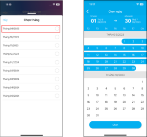 - Chọn tháng/kỳ/thời gian tương ứng.
