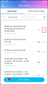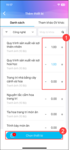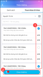 - Nhấn vào biểu tượng dấu cộng để mượn thiết bị kèm số lượng mong muốn. Nhấn Chọn thiết bị để thêm vào danh sách.