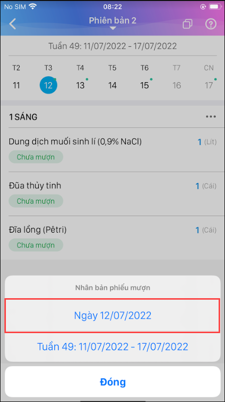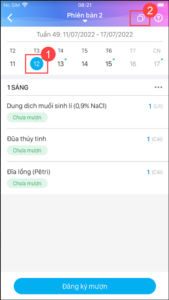 - Chọn ngày có phiếu mượn thiết bị cần nhân bản, nhấn vào biểu tượng sao chép tại góc trên bên phải màn hình.