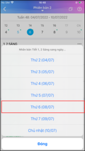 - Chọn một ngày trong tuần cần sao chép thông tin phiếu mượn thiết bị.