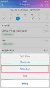 - Chọn 1 ngày trong tuần học để sao chép phiếu mượn thiết bị đến ngày đó.