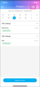 - Chọn tuần cần nhân bản phiếu mượn thiết bị, nhấn vào biểu tượng sao chép tại góc trên bên phải màn hình.