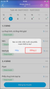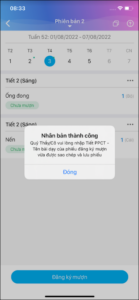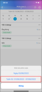 - Trường hợp sao chép sang tuần có phiếu chưa ghi mượn: Ứng dụng hiển thị tuần đã phiếu phát sinh phiếu đăng ký mượn, bạn có muốn dữ liệu sao chép thay thế các phiếu đăng ký mượn này không?