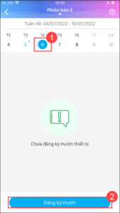 - Chọn ngày cần lập kế hoạch mượn thiết bị. Nhấn Đăng ký mượn.