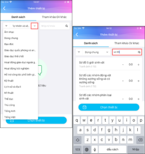- Tại phần Danh sách, lọc nhanh danh sách thiết bị theo môn học bằng cách nhấn vào biểu tượng mũi tên hoặc nhập từ khóa trên thanh tìm kiếm.