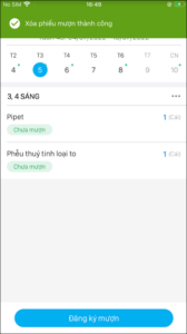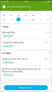 - Trường hợp anh/chị thực hiện sao chép sang ngày có phiếu mượn đã được ghi mượn: Ứng dụng hiển thị thông báo ngày đã phát sinh phiếu đăng ký được ghi mượn nên không thể sao chép đến ngày này.