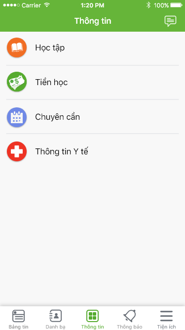 1. Đăng nhập vào ứng dụng Phụ huynh, chọn tab Thông tin.