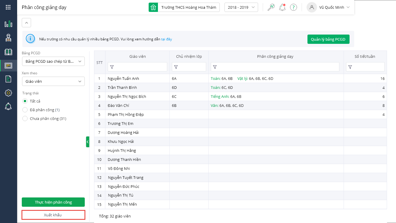 - Từ phiên bản R116: Khi có biến động nhân sự hoặc thay đổi kế hoạch, nhà trương có thể lưu lại phân công giảng dạy cũ và bổ sung phân công giảng dạy mới, giúp nhà trường in các báo cáo, sổ sách thể hiện đúng thông tin phân công giảng dạy theo học kỳ.
