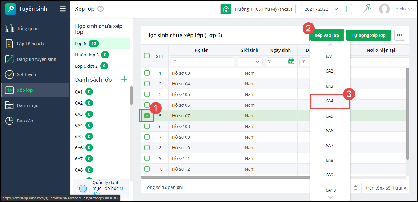 Sau khi nhận hồ sơ trúng tuyển của các học sinh, nhà trường có thể dễ dàng thực hiện xếp lớp cho các hồ sơ đó.
