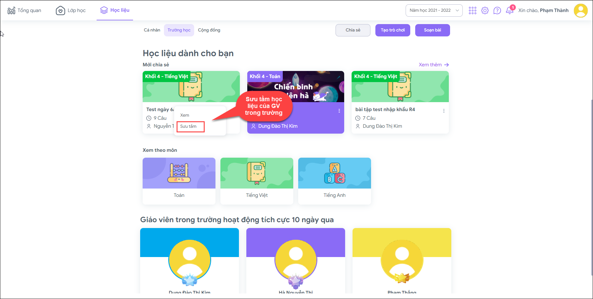 Giúp giáo viên tham khảo học liệu của mình hoặc học liệu của các giáo viên khác chia sẻ.