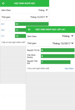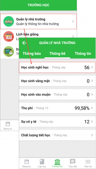 4. Chạm vào lớp cần xem số học sinh nghỉ học.