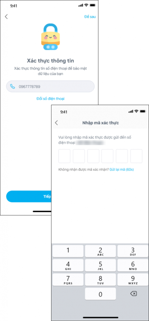- Từ lần đăng nhập tiếp theo qua Zalo, anh/chị nhập số điện thoại, mã xác thực để xác thực thông tin và bảo mật dữ liệu của anh/chị