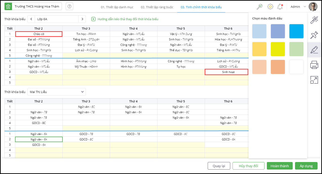 Người lập thời khóa biểu cũng có thể theo dõi tiết chào cờ và sinh hoạt của giáo viên chủ nhiệm.