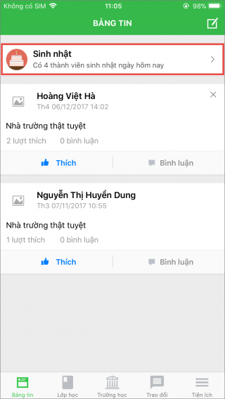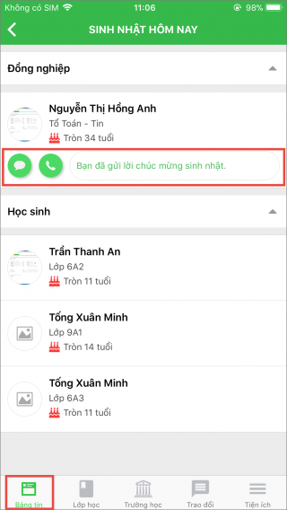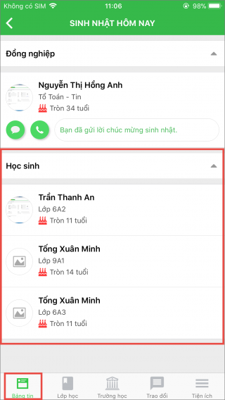 4. Ngoài ra, anh/chị còn có thể xem sinh nhật của các học sinh trong trường
