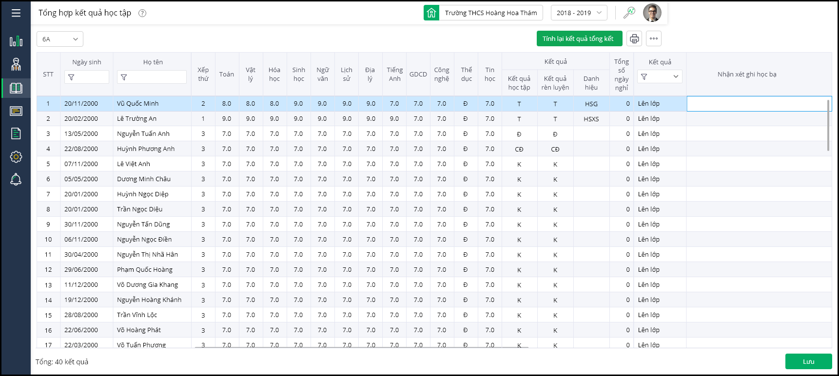 3. Tại đây, phần mềm tự động thực hiện tổng kết cho toàn bộ học sinh trong lớp theo tiêu chí:
