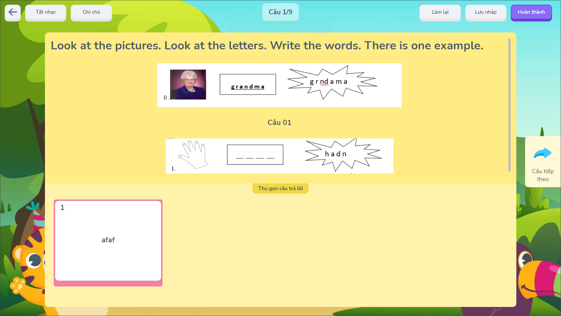 - Học sinh vào làm bài, để chuyển sang câu khác nhấn vào mũi tên có nội dung Câu tiếp theo để làm bài.
