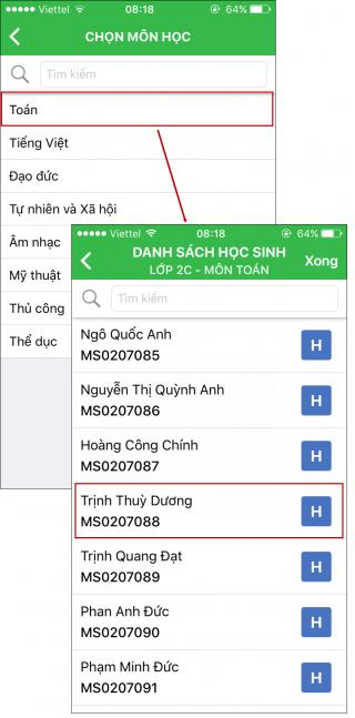 3. Chọn Môn học và Học sinh cần nhận xét