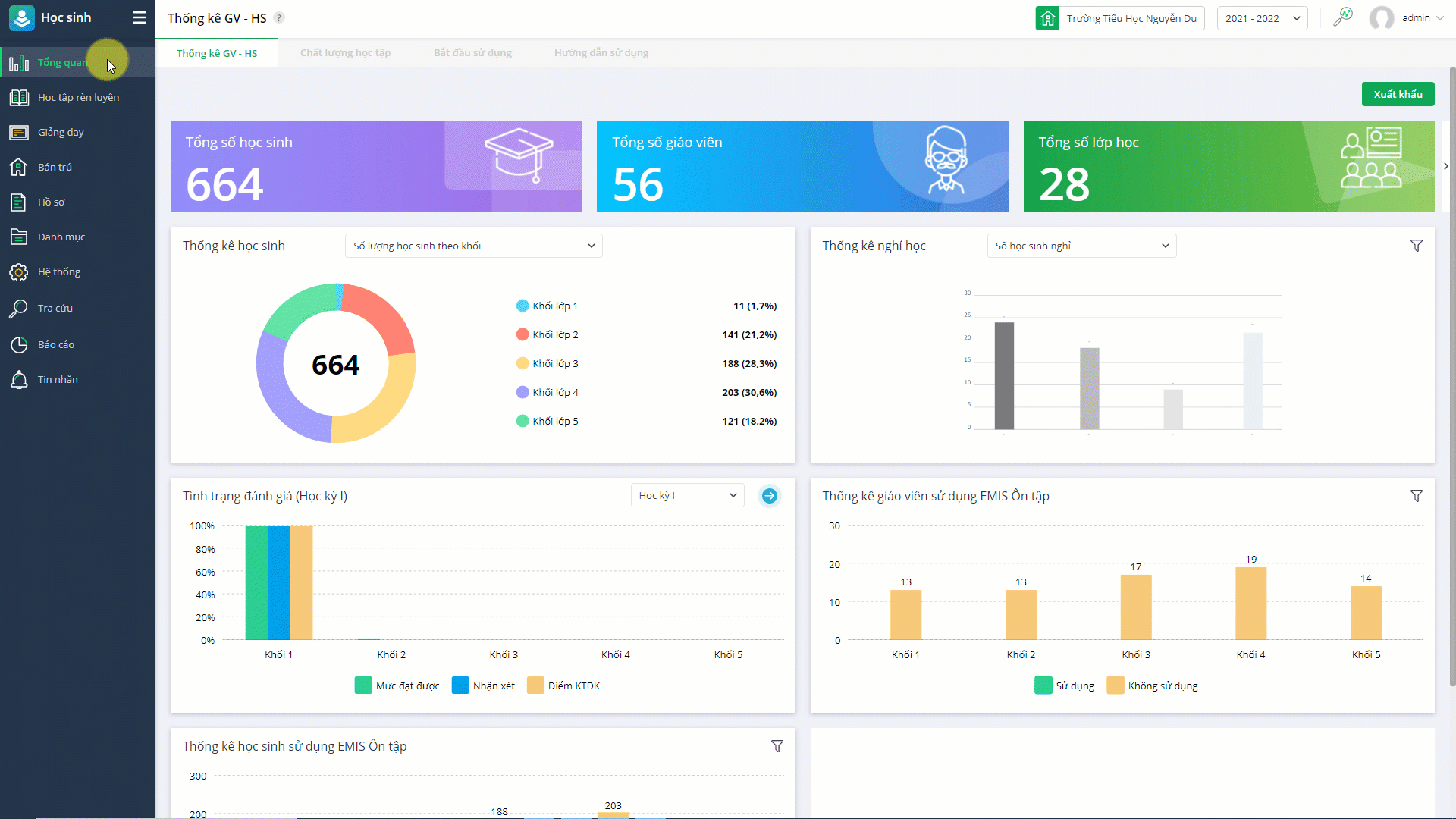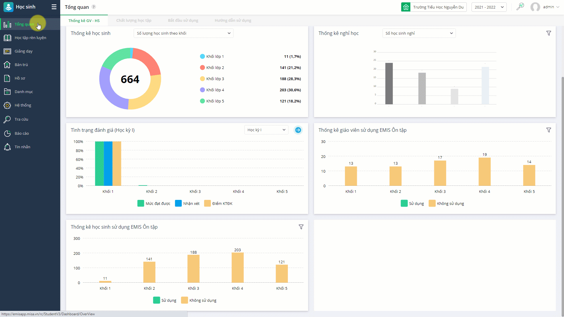 Vào Học sinh\Tổng quan\Thống kê GV – HS