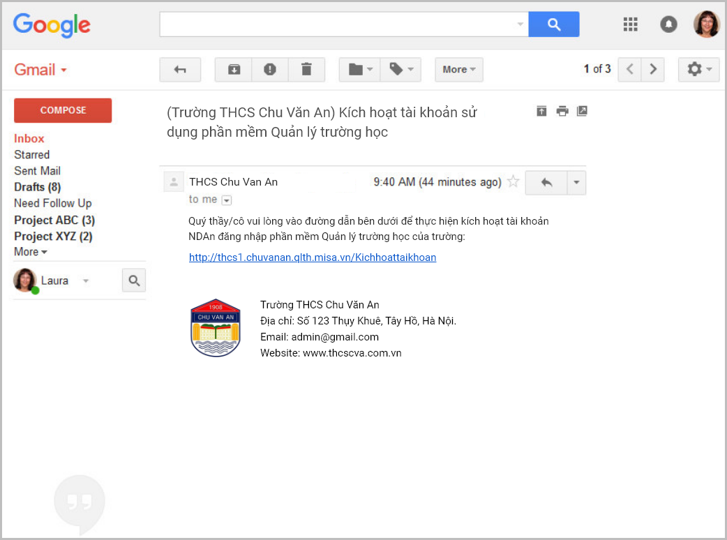 Sau khi điền đầy đủ thông tin kích hoạt tài khoản, anh chị sẽ nhận được thông báo về email đã khai báo trước đó.