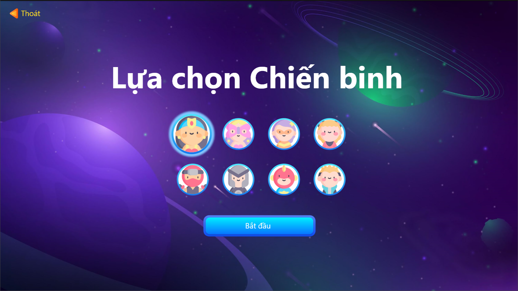 Bước 3: Trước khi chơi, học sinh chọn chiến binh để hóa thân và bắt đầu chơi.