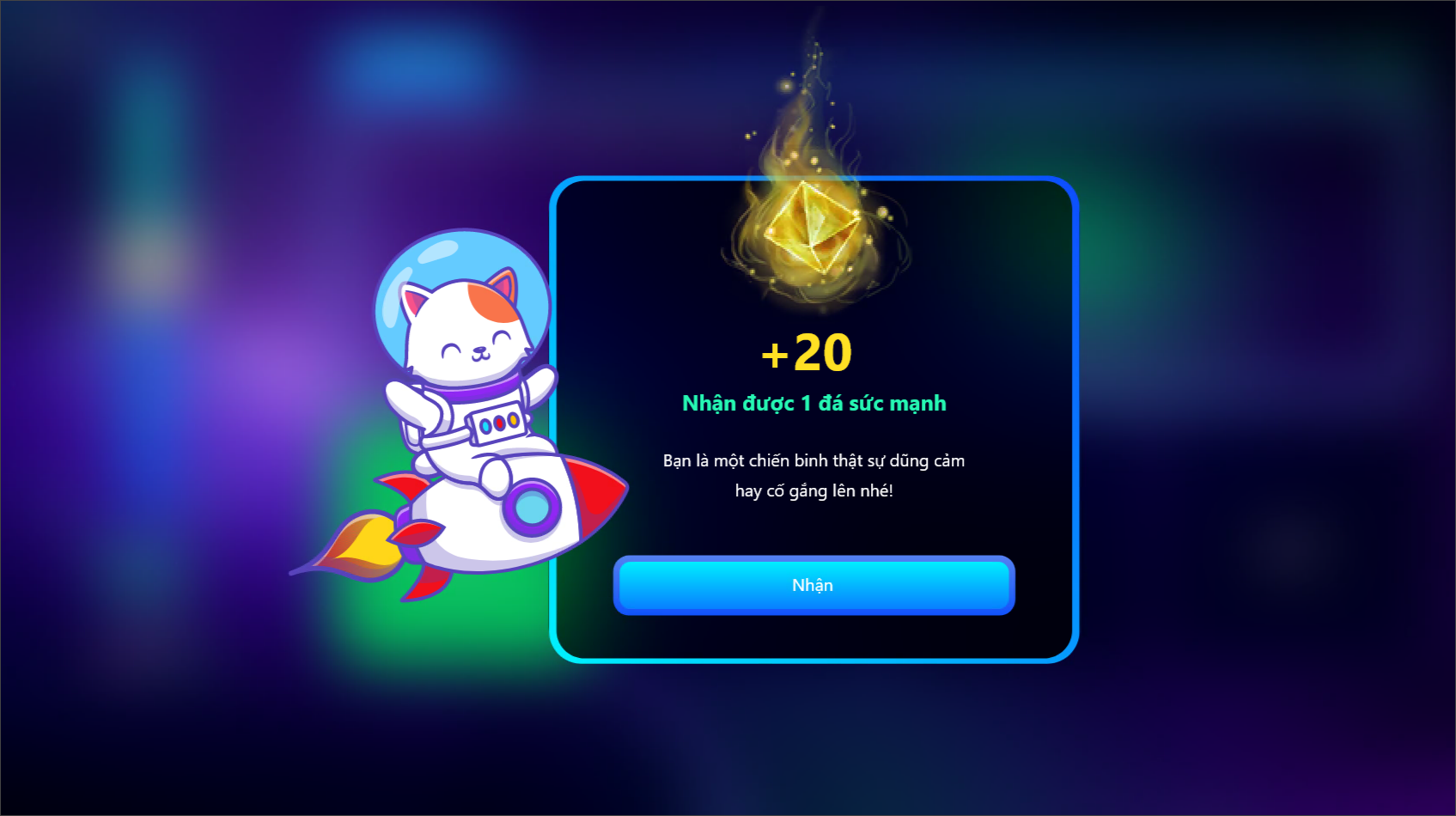 Bước 4: Khi trả lời câu hỏi, với đáp án đúng học sinh sẽ được cộng điểm, nhận đá sức mạnh.