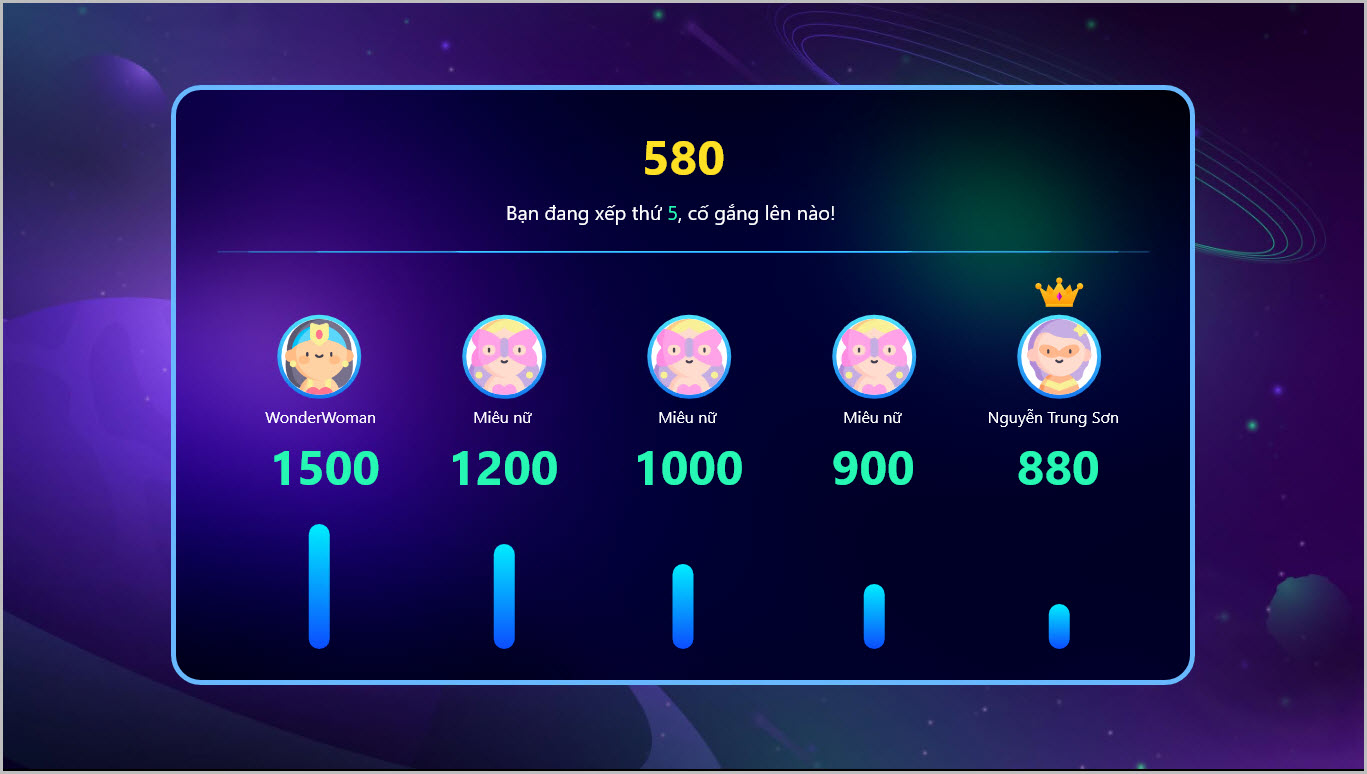 Bước 5: Sau khi kết thúc game chiến binh thiên hà, học sinh xem được thứ hạng của mình và những người chơi khác.