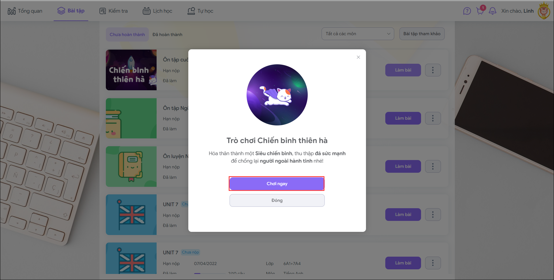 Bước 2: Học sinh nhấn vào Chơi ngay để bắt đầu chơi game.