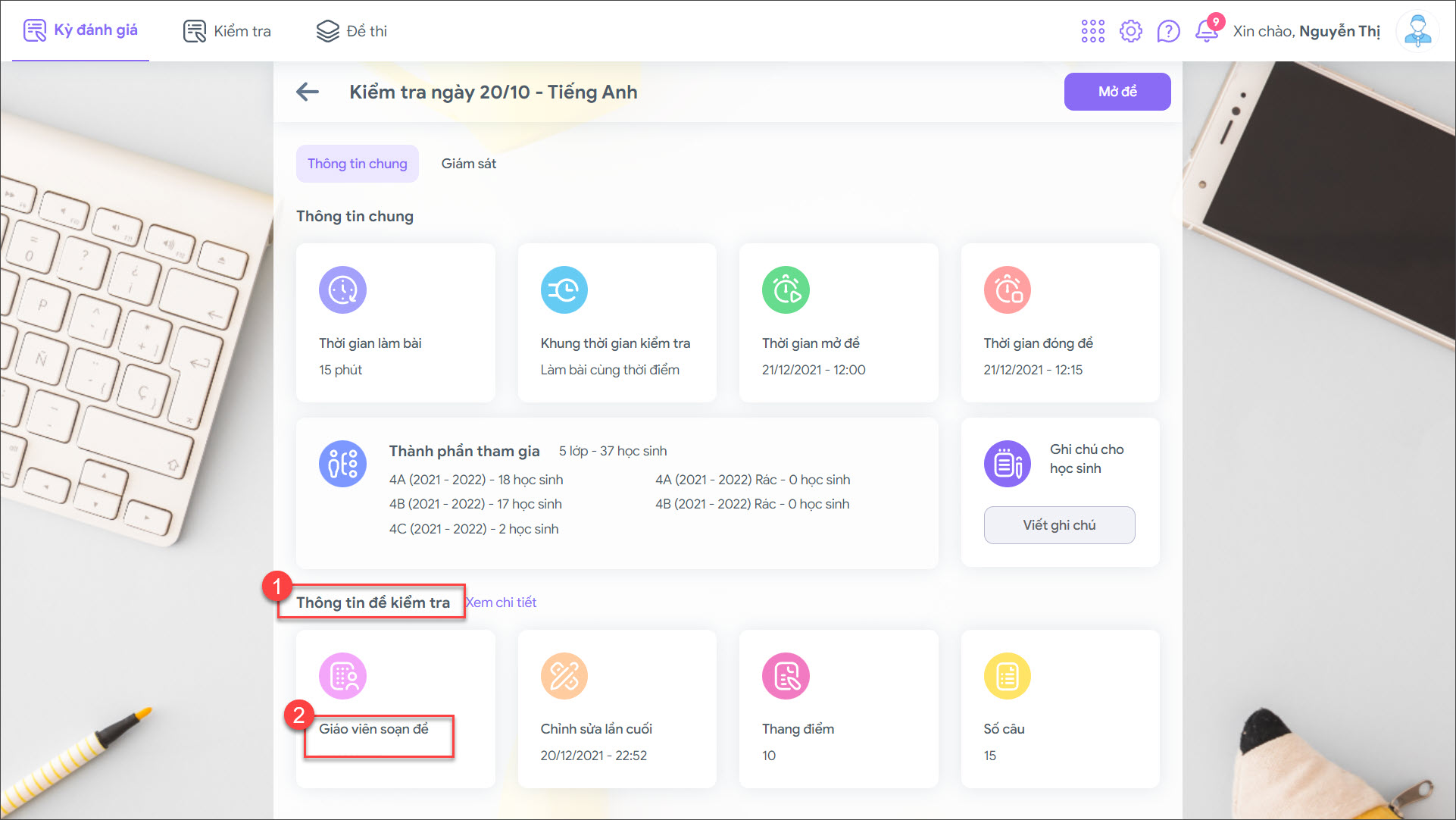 Bước 4: Tại phần Thông tin đề kiểm tra, các thầy cô giáo khác trong trường sẽ không thấy thông tin giáo viên ra đề.