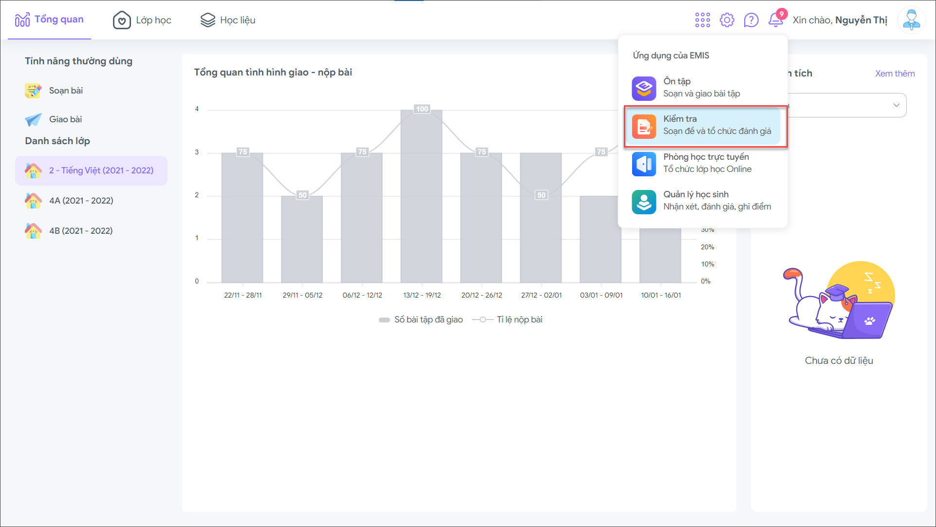 Bước 1: Ban Giám hiệu khi vào Kiểm tra để theo dõi dược Danh sách kỳ đánh giá.