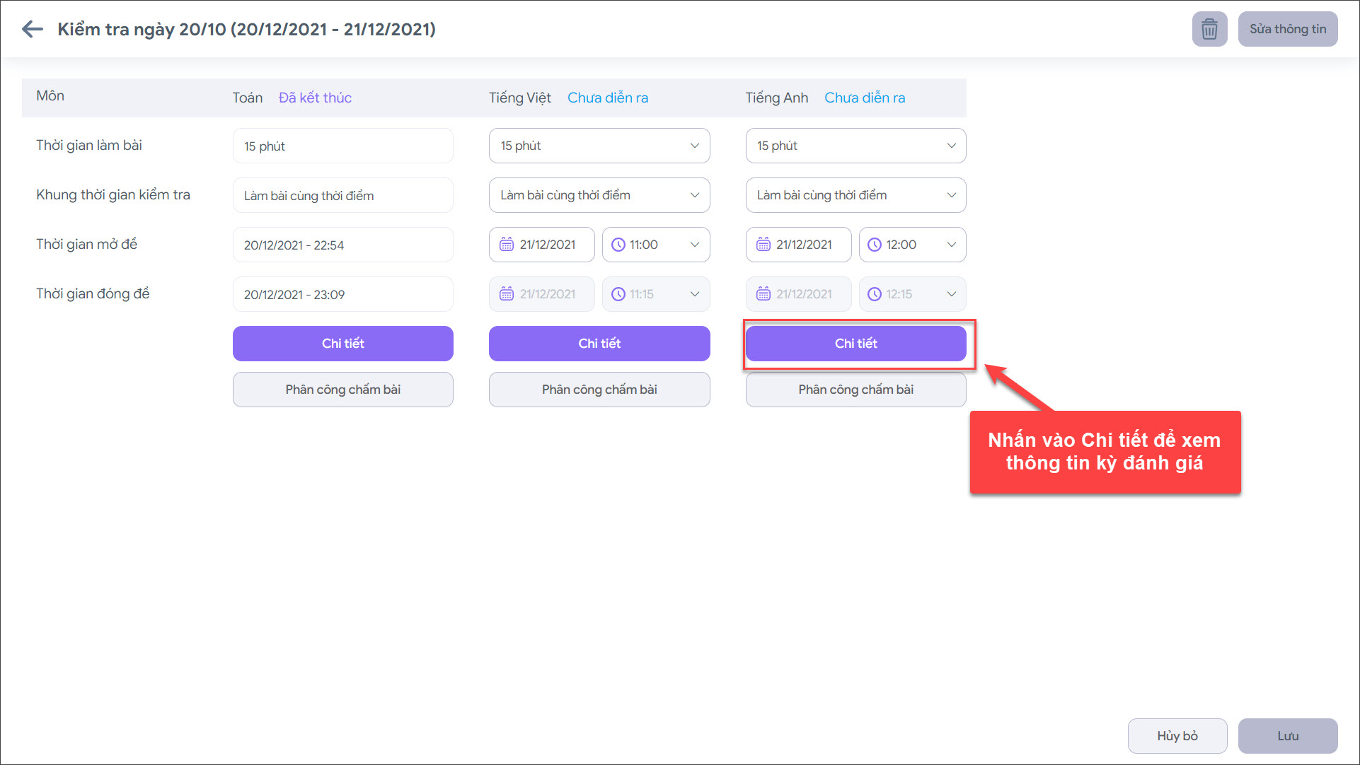 Bước 3: Ban giám hiệu chọn Chi tiết để xem thông tin kỳ đánh giá.