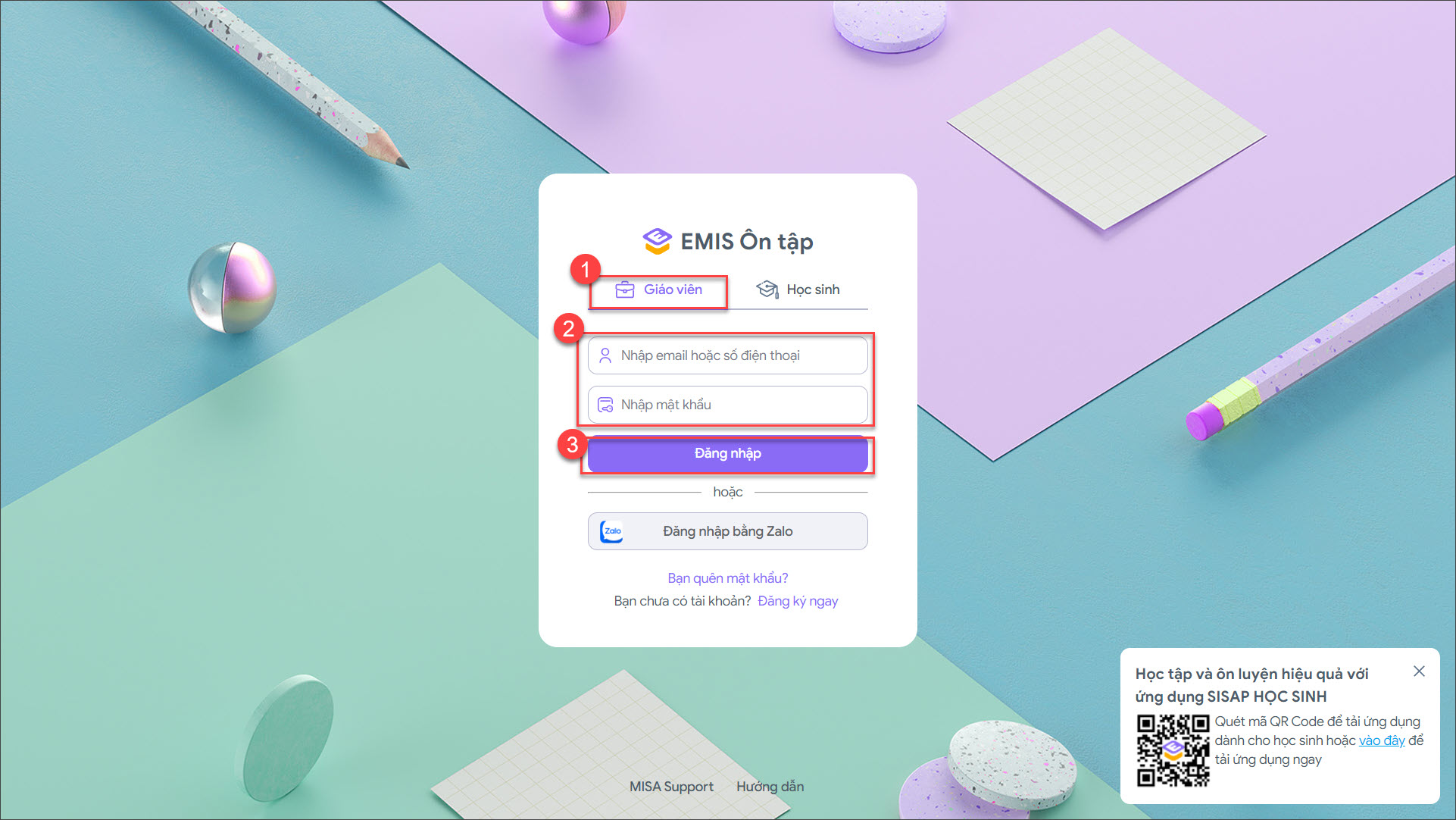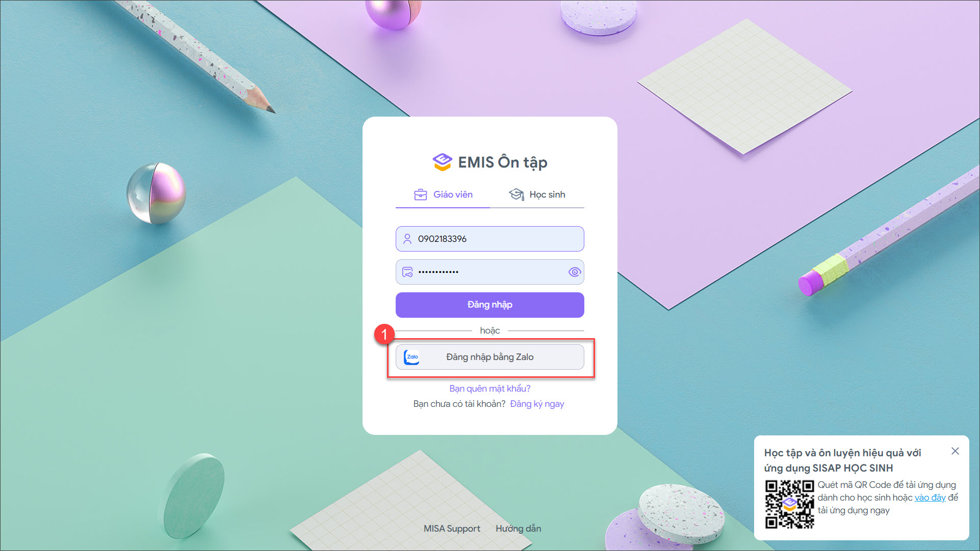 Bước 1: Thầy cô chọn Đăng nhập bằng Zalo.