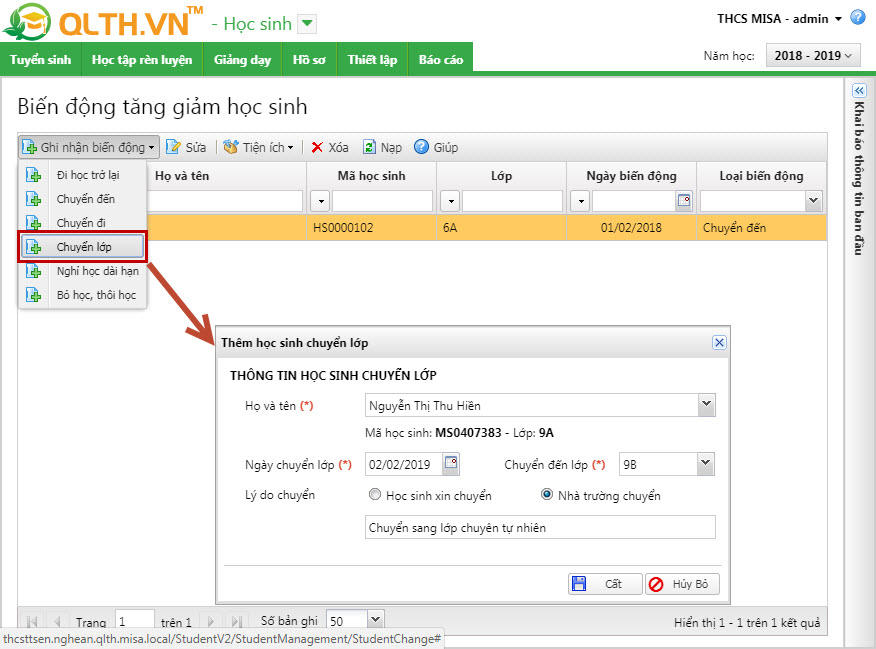 2. Quản lý học sinh chuyển lớp