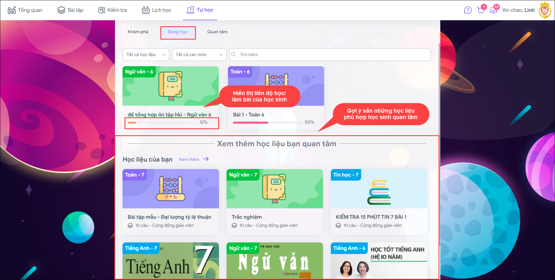 - Quan tâm: Các khóa học, học liệu học sinh đã đánh dấu yêu thích để tham khảo sau