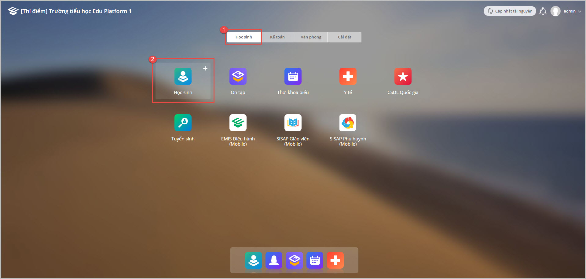 • Sau khi đăng nhập vào MISA EMIS, anh chị chọn phân hệ Học sinh.
