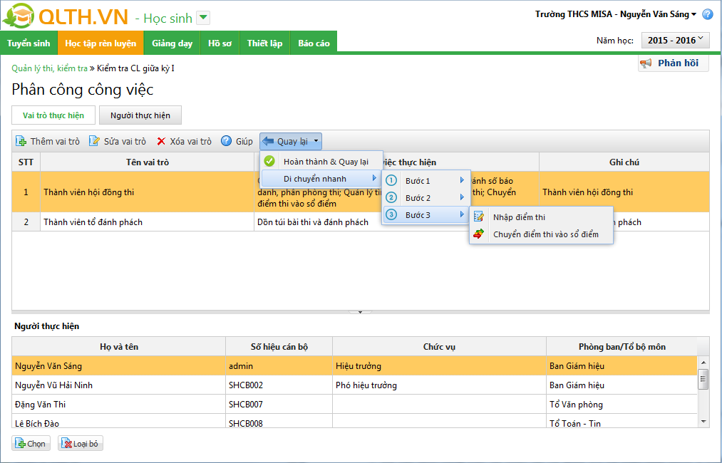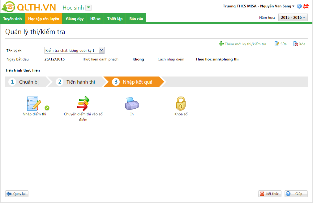 Giúp Hội đồng thi nhà trường thực hiện các công việc của giai đoạn nhập kết quả gồm: