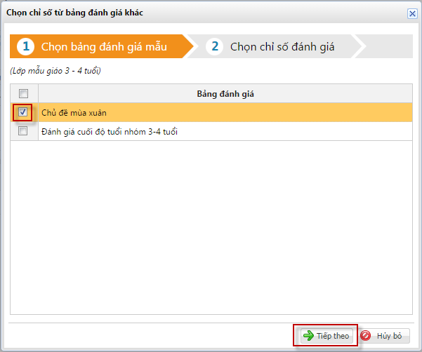 2. Chọn nhóm tuổi cần lập kế hoạch đánh giá theo chủ đề.