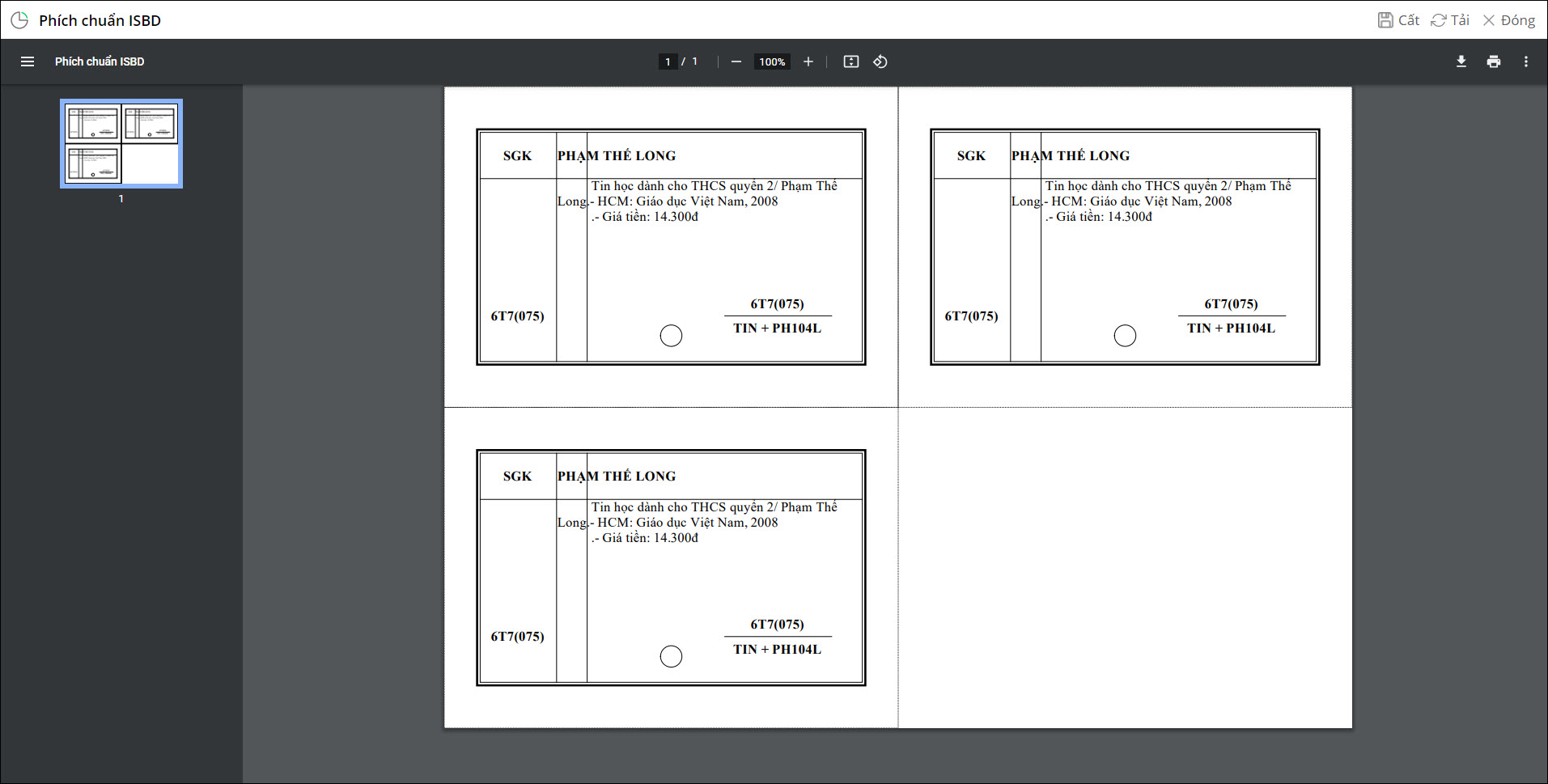 Bước 5: Sau khi nhấn Đồng ý, anh/chị kiểm tra lại Phích chuẩn ISBD để in.