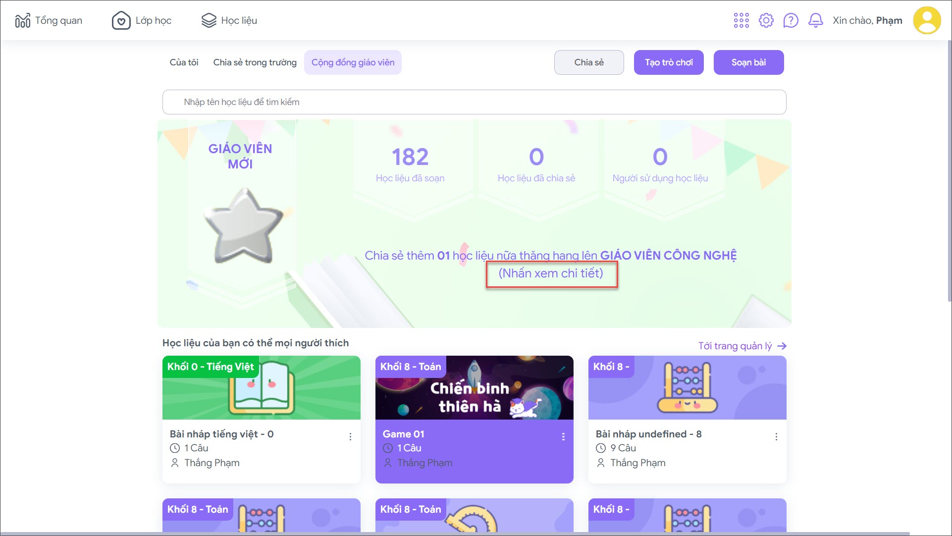 3. Giáo viên xem các học liệu được chia sẻ trên cộng đồng