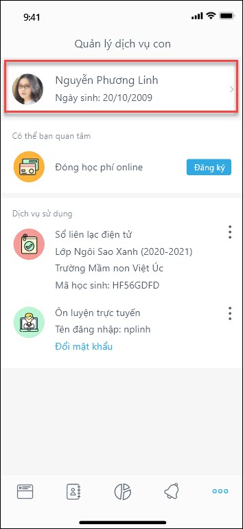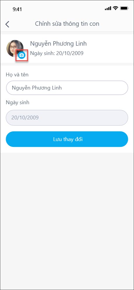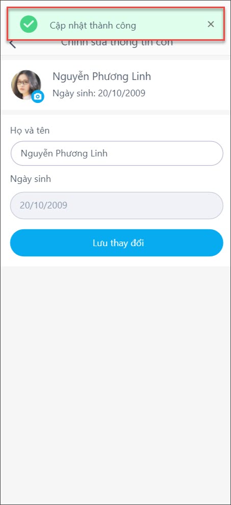 Từ phiên bản R57.01: Phụ huynh mong muốn chỉnh sửa tên và ảnh đổi diện trên hồ sơ con.