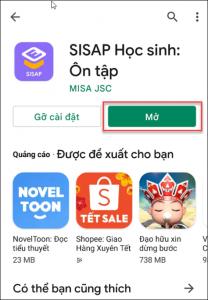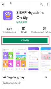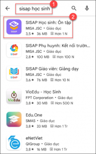 Bước 1: Vào CH Play, trên thanh công cụ tìm kiếm “SISAP Học sinh”. Chọn ứng dụng “SISAP Học sinh: Ôn tập”.