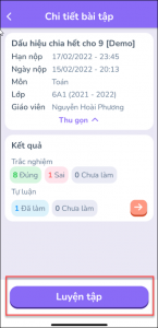 Bước 2: Chọn “Luyện tập” để tiến hành ôn luyện, làm lại bài tập cũ.