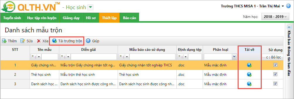 3. Nhấn Tải trường trộn để tải về những trường trộn cần thay đổi.