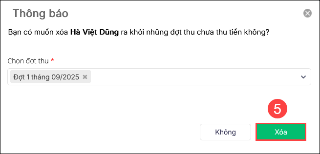 Trường hợp 4: Xóa học sinh khỏi đợt thu chưa thu tiền