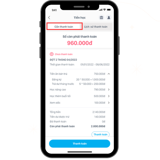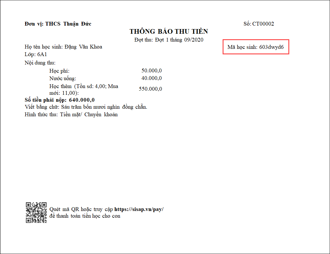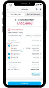 Cách 2: Thanh toán tiền học cho con qua Thông báo thu tiền