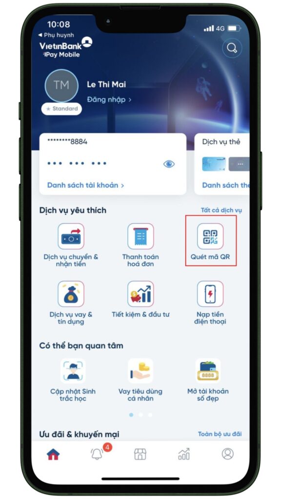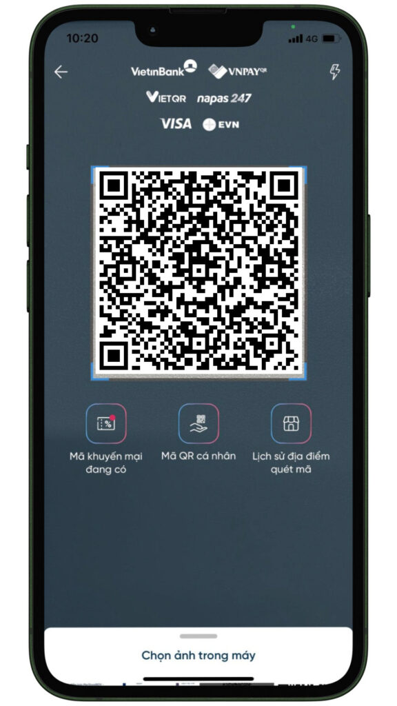 Ví dụ: Anh/chị thanh toán tiền học cho con quan ứng dụng vietinbank, anh/chị đăng nhập vào tài khoản Vietinbank và chọn quét mã QR