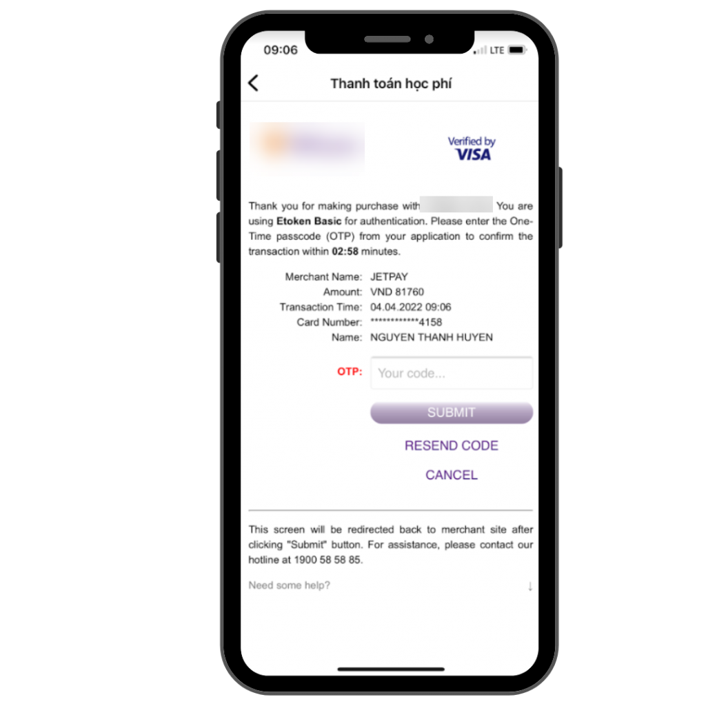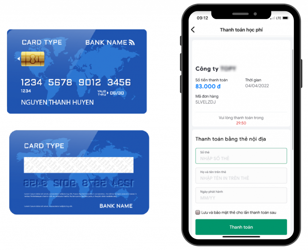 Bước 3: Nhập thông tin trên thẻ vào ô tương ứng để hoàn thành xác nhận thông tin thẻ.