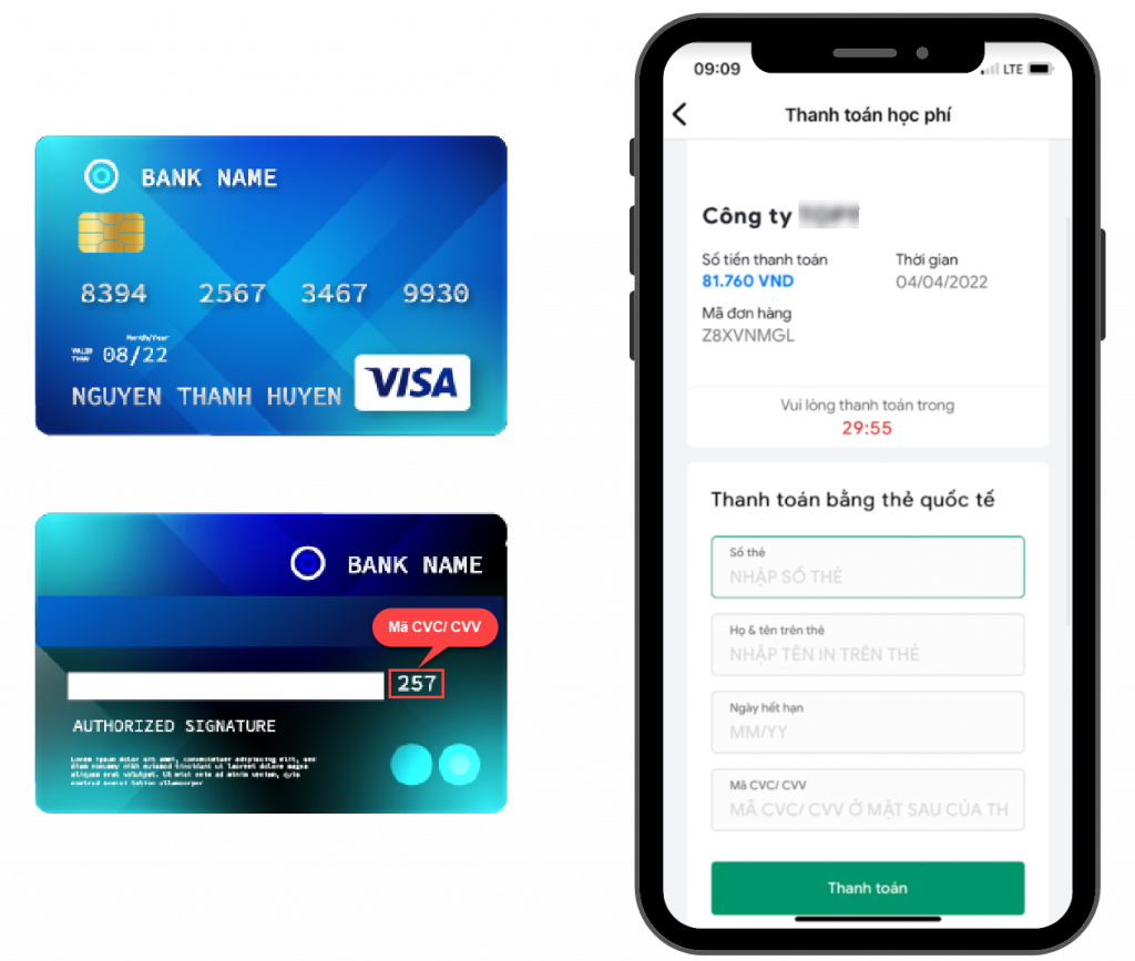 Bước 3: Nhập thông tin trên thẻ vào ô tương ứng để hoàn thành xác nhận thông tin thẻ.