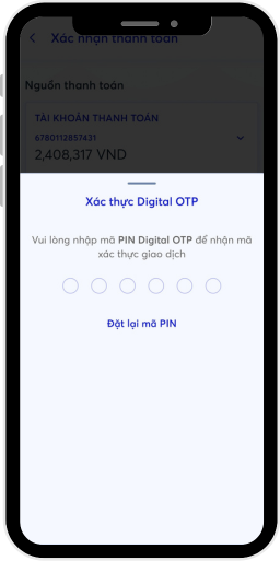 - Nhấn Tiếp tục, nhập mã OTP để thực hiện thanh toán tiền học.