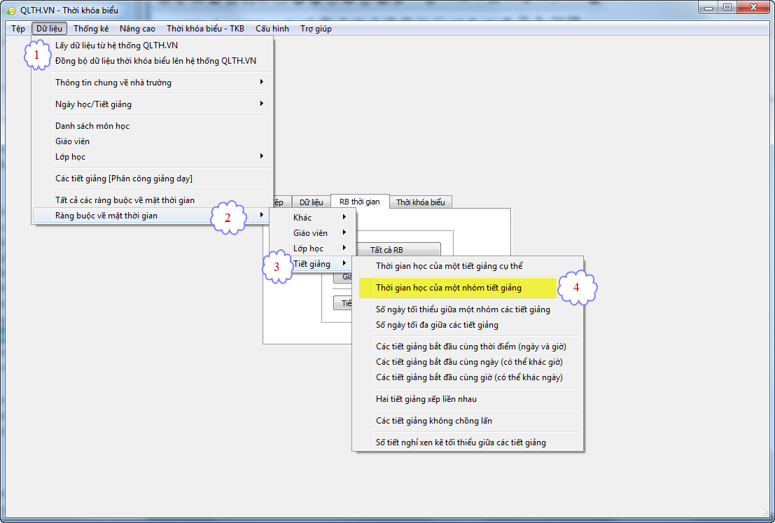 Ràng buộc này giúp xác định thời gian cụ thể cho 1 nhóm các tiết giảng, được áp dụng trong trường hợp nhiều giáo viên có con nhỏ (không lên lớp vào tiết đầu và tiết cuối của các buổi dạy) hoặc các giáo viên cùng tổ bộ môn (cần nghỉ cùng tiết để họp, sinh hoạt chuyên môn) thì cần thiết lập để các giáo viên này cùng trống tiết như nhau. Việc thiết lập được thực hiện như sau: