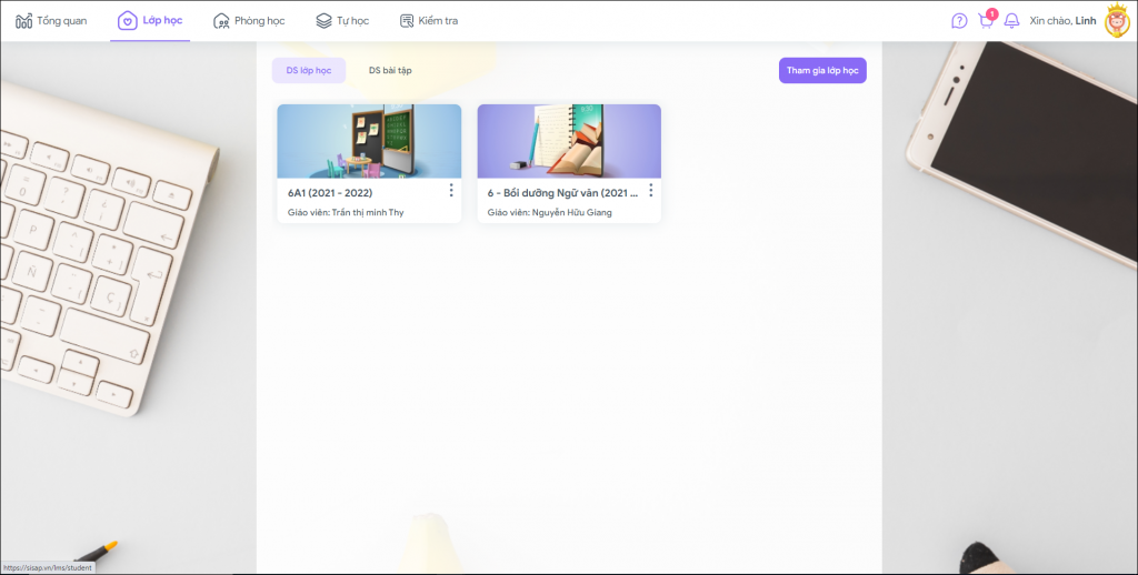 1. Học sinh vào Lớp học, chọn DS lớp học để kiểm tra lớp học mình đã tham gia.
